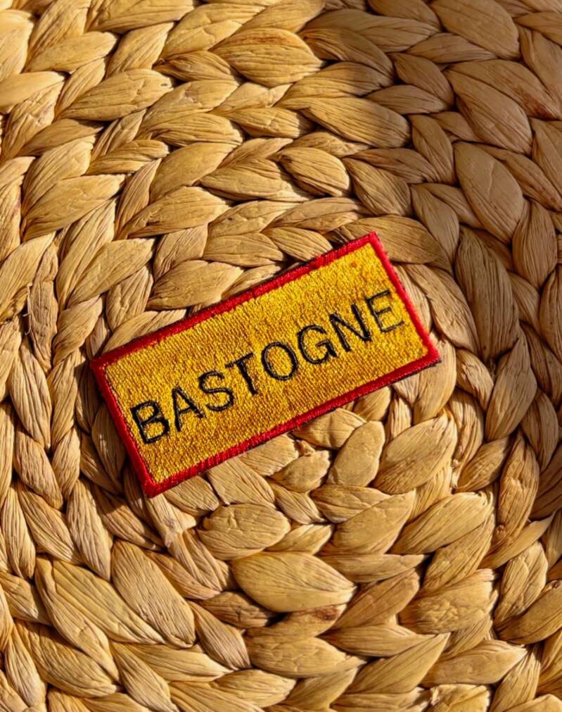 Verleihen Sie Ihrer Kleidung, Ihren Taschen oder Accessoires mit diesem wunderschönen gestickten Aufnäher mit dem Motiv Bastogne eine einzigartige Note. Er wurde sorgfältig entworfen, ist in kräftigen Farben gehalten und hochwertig verarbeitet, mit einem strahlend gelben Hintergrund und einem eleganten roten Rand.