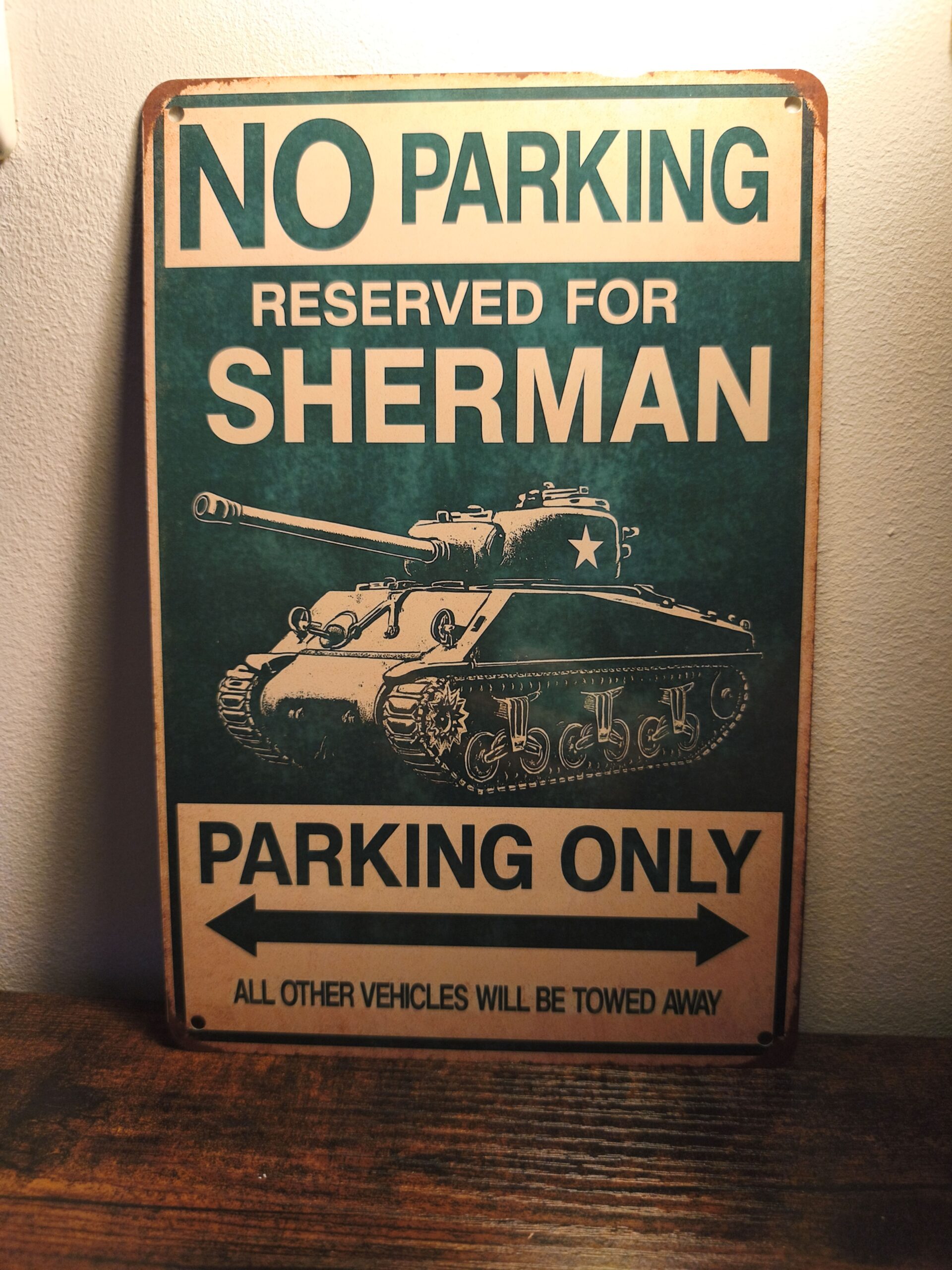Avec son style vieilli et son illustration iconique du char Sherman, ce panneau apporte instantanément du caractère à n’importe quel espace : garage, atelier, man cave, bureau, salle de jeux ou collection WWII.