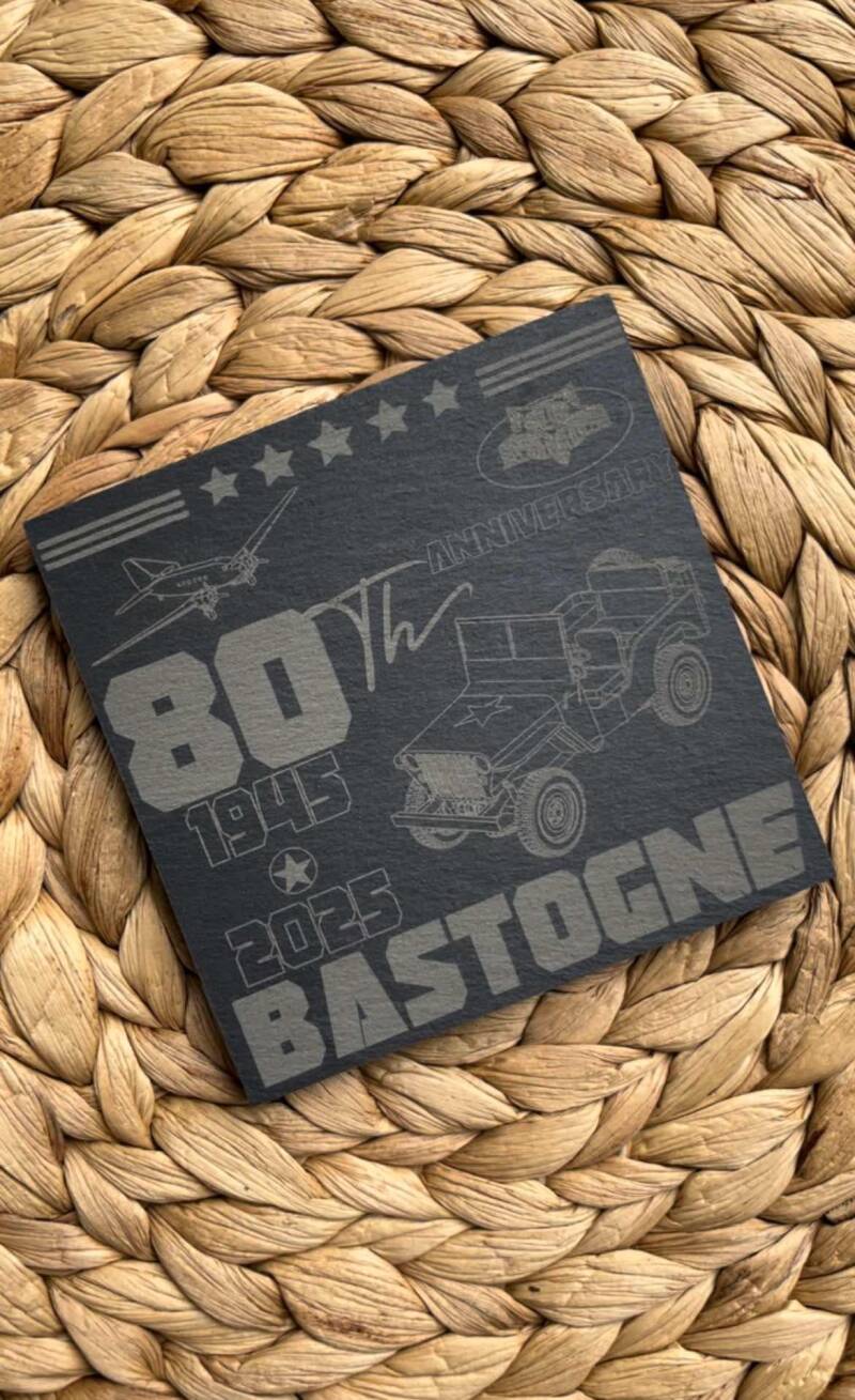 Engraved slate coaster - 80th Anniversary of the end of World War II(Bastogne 1945-2025)