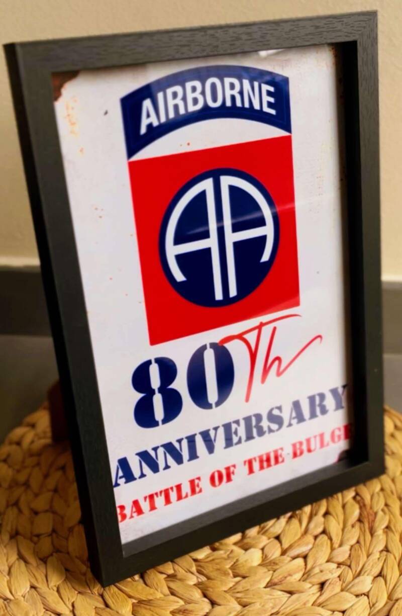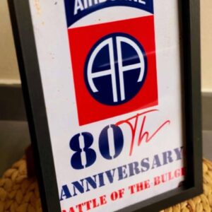 Cartel de aluminio impreso que representa a la 82ª División Aerotransportada durante la Batalla de las Ardenas. Este póster presenta un diseño histórico con detalles precisos, incluida la famosa insignia de la división y elementos que evocan el invierno de 1944-1945. Ideal para los aficionados a la historia militar y a la Segunda Guerra Mundial, es un homenaje duradero a los paracaidistas de esta legendaria unidad.