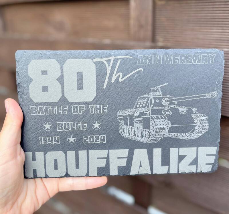 Reviva la historia con esta magnífica pizarra de 20×20 cm grabada con láser que representa el famoso tanque Panthère de Houffalize, símbolo definitorio de la Segunda Guerra Mundial. Esta pieza única recoge el patrimonio militar y lo pone al alcance de aficionados y coleccionistas por igual.
