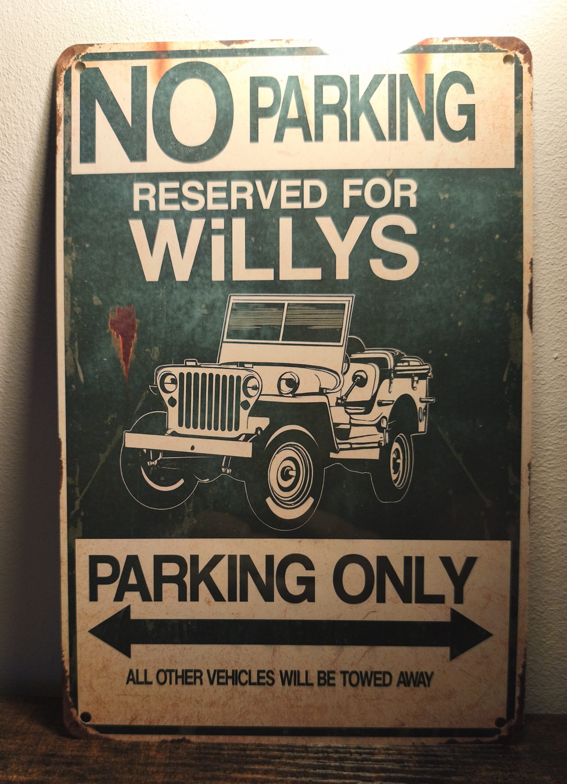 Plongez dans l’esprit de la Seconde Guerre mondiale avec ce superbe panneau métallique vintage “Reserved for Willys”.