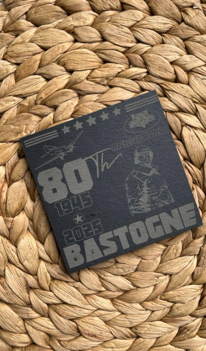 Sous-verre en ardoise gravée – 80e Anniversaire de la fin de la seconde guerre mondial(Bastogne 1945-2025)