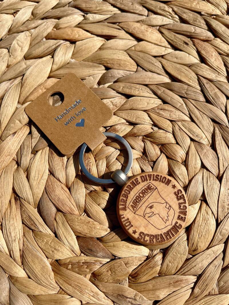 Porte-clé en bois gravé – 101st Airborne Division, Commémorations du 80e anniversaire de la Seconde Guerre mondiale (1940-1944)